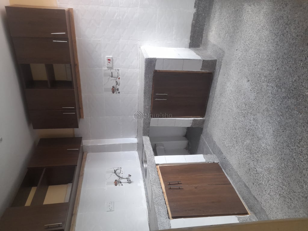 Spacious kitchen with cabinet and sink